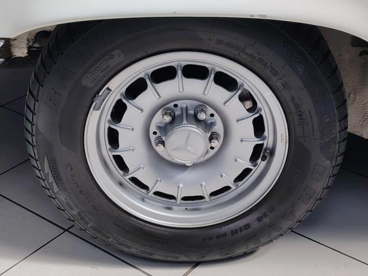 The black MB-Tex interior and white exterior are both very well preserved, highlighting the timeless elegance of the R107 design.