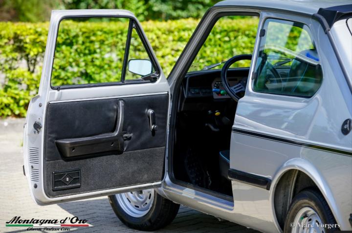 Met een carrosserie in zilver metallic (Grigio Metallizzato FI 625) voorzien van ‘127 Sport’ zwart-witte striping en een sportief zwart stoffen interieur presenteert deze Fiat 127 Sport zich als een doelgerichte ‘hot hatch’. Sterker nog, de Fiat 127 super mini, gepresenteerd in 1971 en winnaar van de titel “Europese auto van het jaar” in 1972, kan worden gezien als de ‘moeder’ van het (hot) ‘hatchback’-genre!