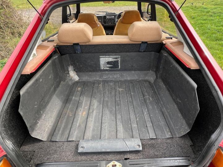 The interior is an absolute joy. The dash is in great condition and still sports an appropriate age related radio, and a cool graphic equaliser in working order! The velour seats are in excellent condition with no rips or tears. They even still have a stunning set of dealer fitted embroidered and padded seat cover which would be very hard to find today. The interior protection is also complimented by the original Saab rubber mats, and hard armadillo type load liner in the boot. The tool kit is still present under the boot floor, as is the parcel shelf, fire extinguisher and warning triangle. The sunroof slides open as it should. The electric windows and mirrors all work nicely. The headlining has dropped slightly at the rear as they often do. It has been pinned up ok and doesn't intrude but could be an area for the next owner to improve should they wish.