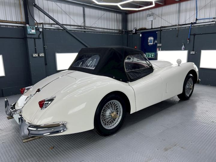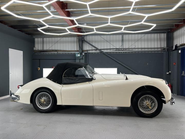Finished in Old English White with contrasting Maroon interior our XK is the more desirable Special Equipment model with C-Type cylinder head and manual / overdrive transmission It has quite a few mechanical modifications and has just undergone an extensive recommissioning at XK legends, Guy Broad in Coventry.