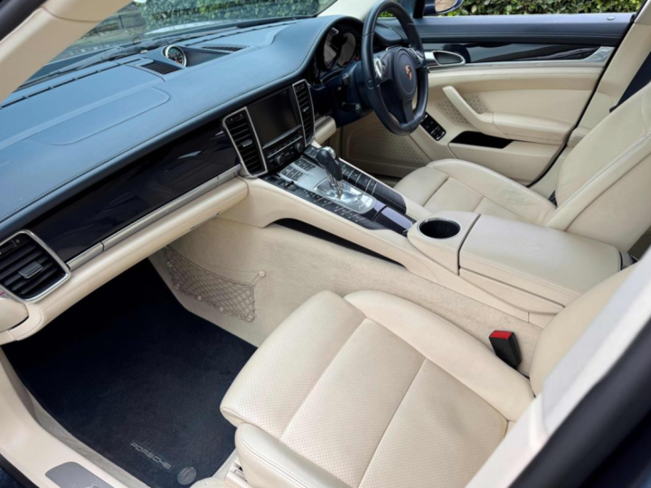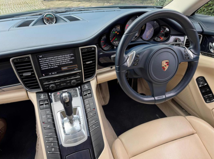 2009 Porsche Panamera 4S finished in probably the most attractive colour scheme of Yachting Blue Metallic with cream hide interior. Powered by the Porsche 4.8 V8 direct fuel injected engine, Porsche claim a 0-60 mph time of 3.8 seconds with a top speed of over 160mph. This lovely example has only just arrived back with us, as the present owner has now reached an age where he considers that his performance car days are coming to a close. The condition of this now 16-year-old Panamera is a credit to its previous owner and has to be seen to be fully appreciated. It comes with a full-service history including a major service this year and its original book pack and is faultless to drive. It has a great specification that includes satelite navigation, climate control, electric panoramic sun roof, multi-spoke alloy wheels, remote tailgate opening, and heated seats. Whilst the total mileage is 98,000, it has been impeccably maintained and it looks and drives like a car that has covered only a 5th of that mileage. If you are looking for a reasonably priced sports car but now need 4/5 seats, this car will make you smile. Not expensive for one in this condition at £15,950
