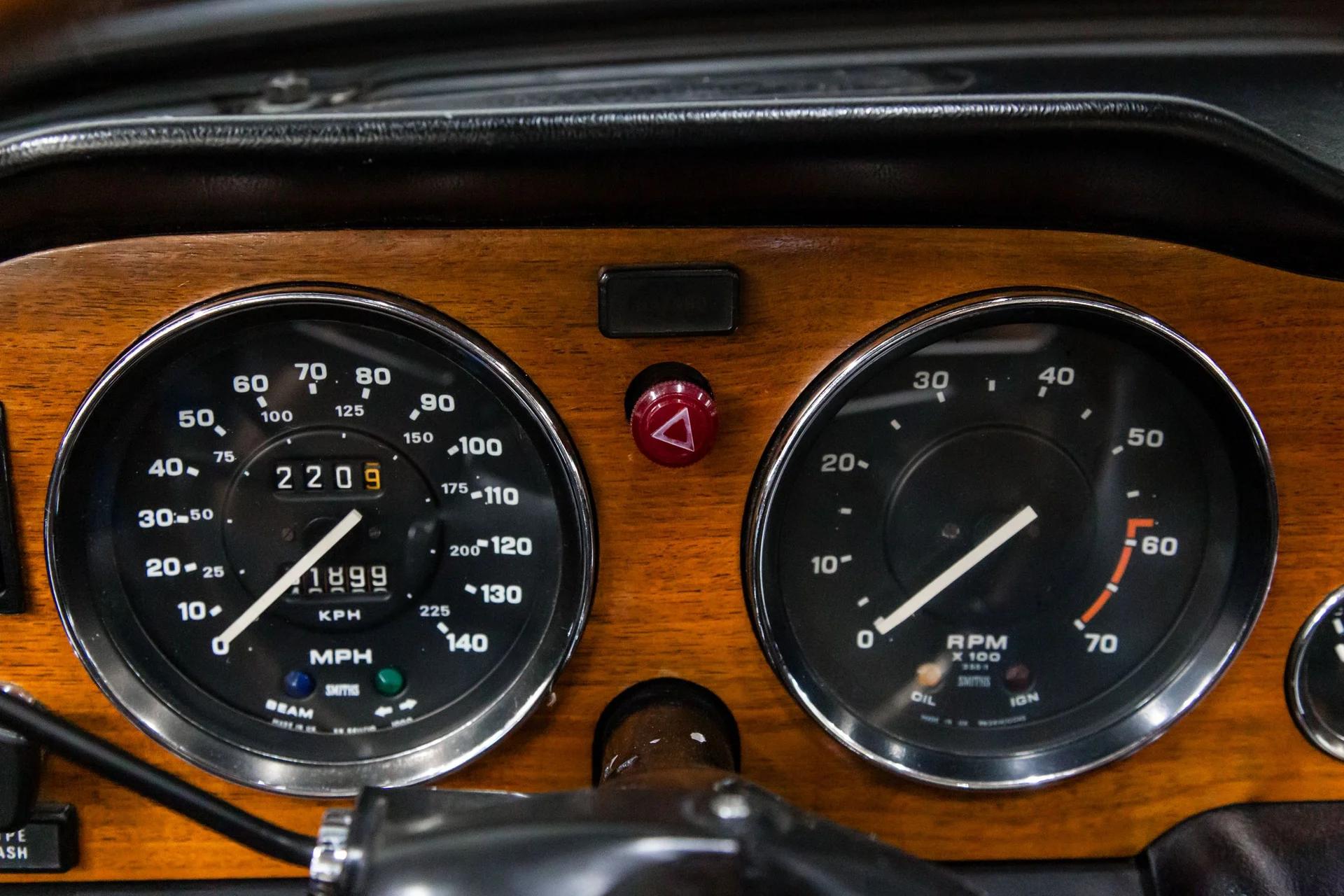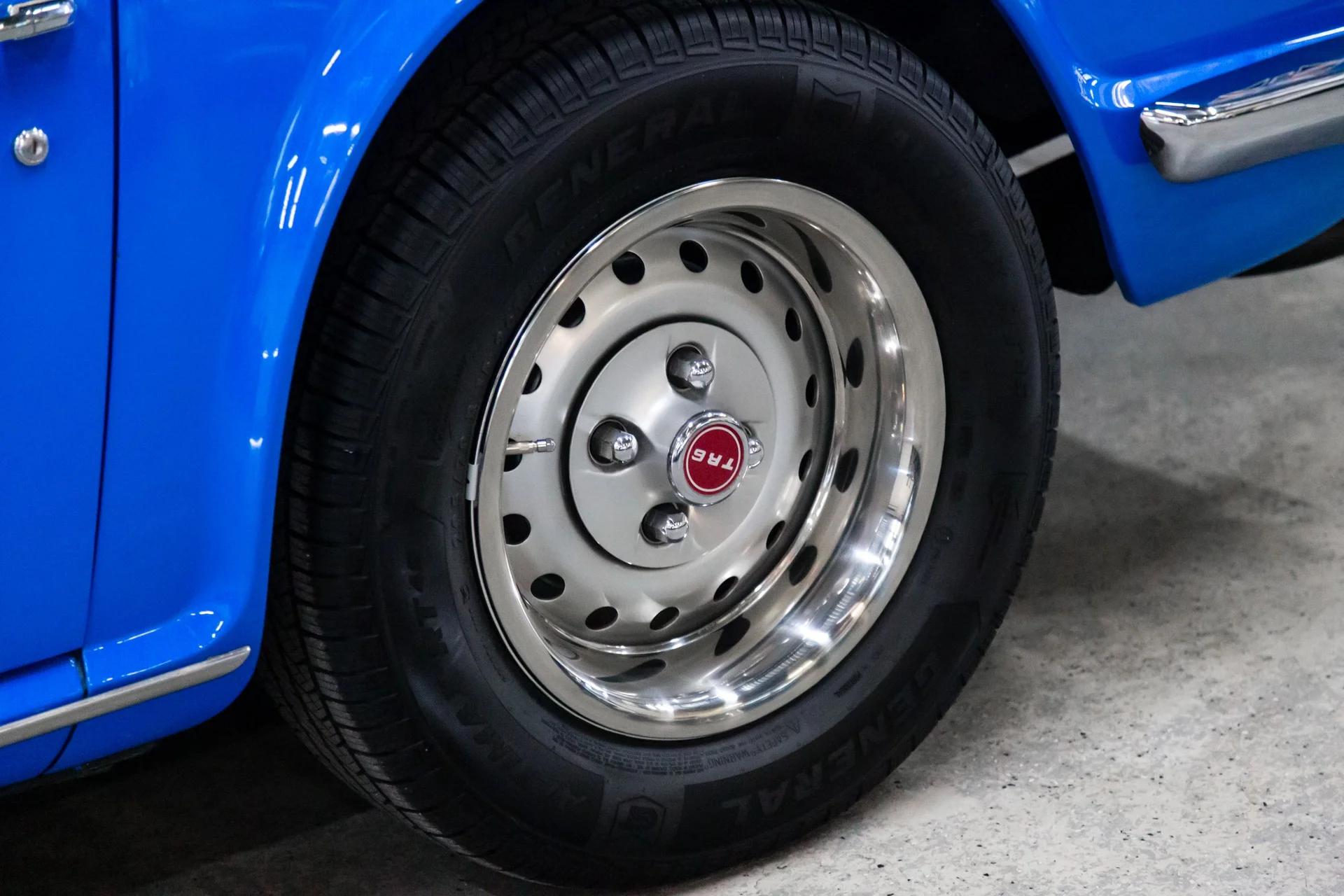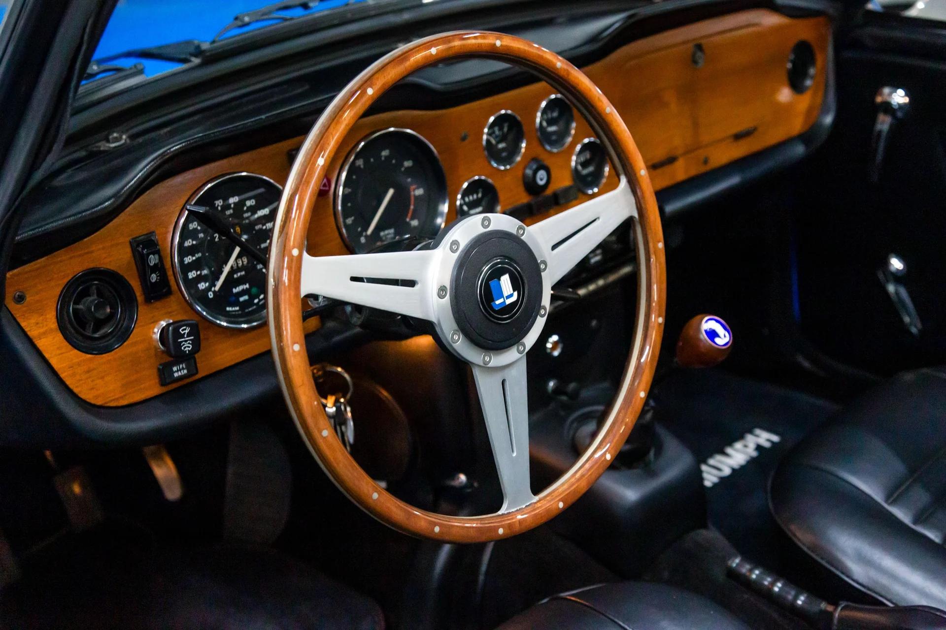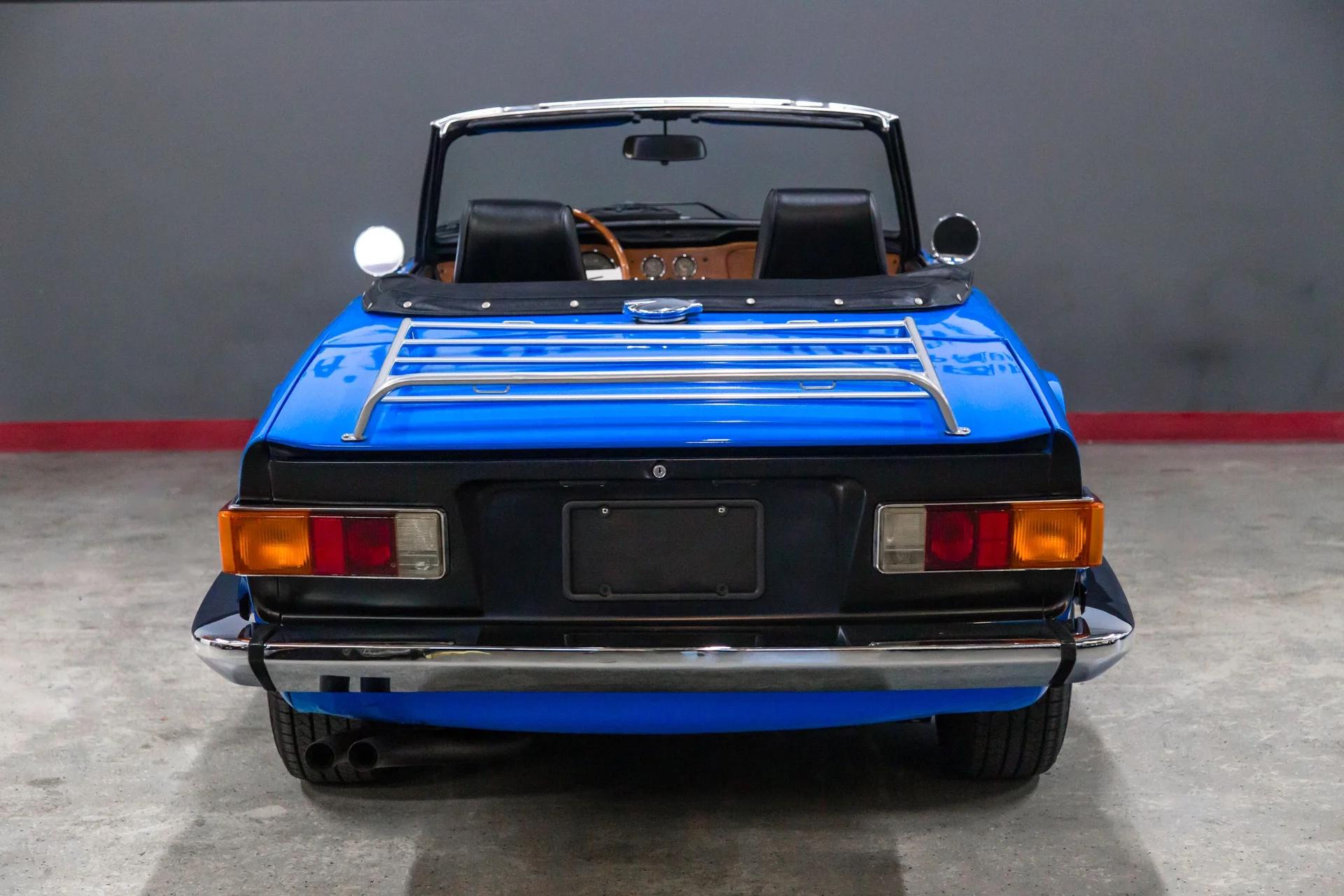 This extraordinary condition TR6 has a lot to brag about. The color is a true TR6 color paint code 146-Tahiti Blue. The bumper overriders have been removed and 1969 Triumph TR6 seats have been installed .The result is some of the attractive characteristics of an early car married to the mature line of a 1976 car.