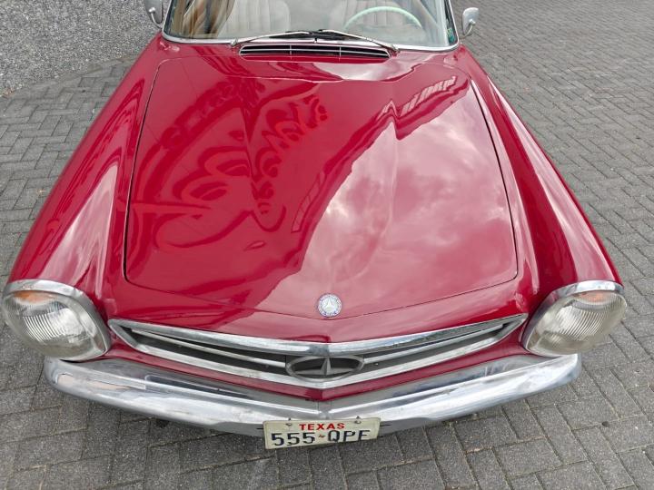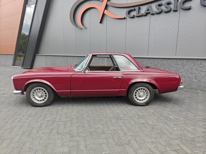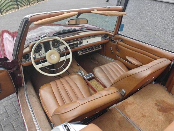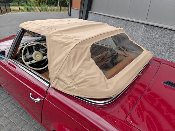 This is an Matching Number 230SL Pagoda with Automatic transmission and 2 Tops, Hardtop and Soft-top, first impression, not an bad example, in the past the previous owner removed the lower side mouldings would be nicer when the are installed again, the car was sitting in storage for a long time and the Matching Number engine has to be awake.