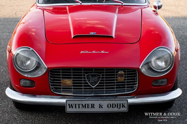 The fastest Flaminia engine was the 3C, which stood for three carburetors. This specific Flaminia Super Sport Zagato, is one of approximately 150 examples produced with the Zagato Double Bubble bodywork. A late production example with a 2,8-liter engine, three carburetors and recessed headlights, this car represents the pinnacle of development. In 2017 this Flaminia came to the Netherlands, recently the engine was completely overhauled by a well-known specialist. The engine is now run in and ready for many beautiful journeys. The car is registered with the Zagato and the Lancia Registro Storico. The car has a Dutch license plate, the Italian license plate shown in the photo is not from this car.