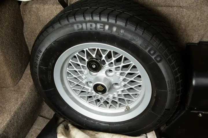 The car came to us with original (still deep tread ) tires that we retained for the next owner .We had new tires installed on the car.