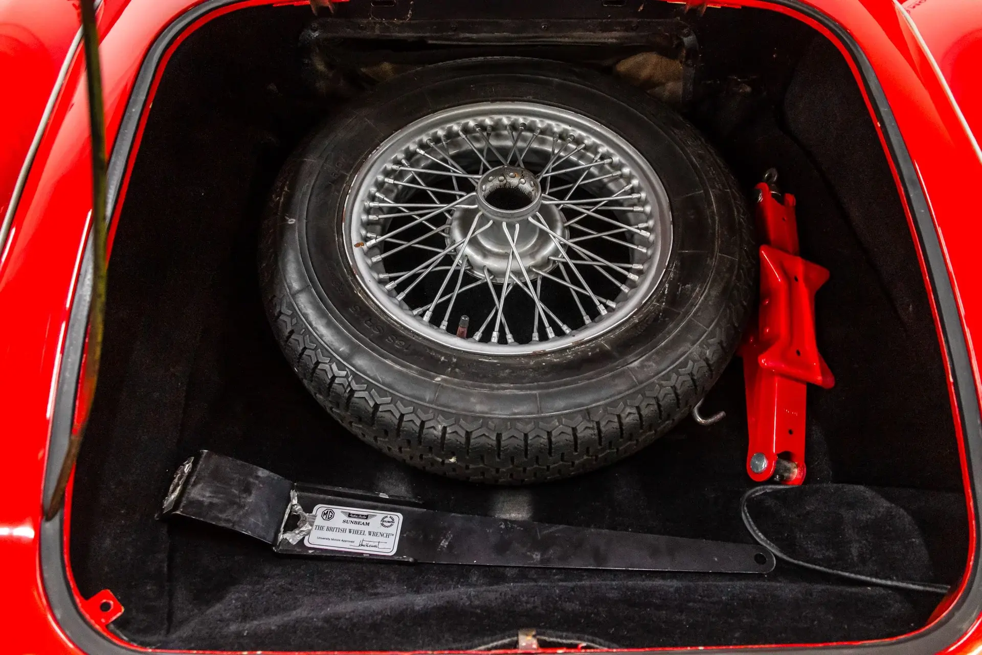 This absolutely straight MGA MKII Roadster hails from a British Car Club members that have aged out and had to part with their lovely red roadster. There were tears when the truck picked it up .I tell you this so you have an understanding of the lovely condition this car is in and how it has been preserved. The paint is absolutely beautiful and those aluminium doors that are on the MGA and for the most part are always wavy are straight. The front wings, doors ,rear quarters are all straight with near perfect body panel gaps. The gauges are crisp, clean and work as designed. The door cards are straight, seats are pliable and in good condition .The soft top and side curtains are as new. Wire wheels and deep tread tires are very nice with clean knock offs .Engine is strong with good oil pressure, the engine runs cool .Brakes are in good order.