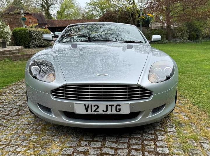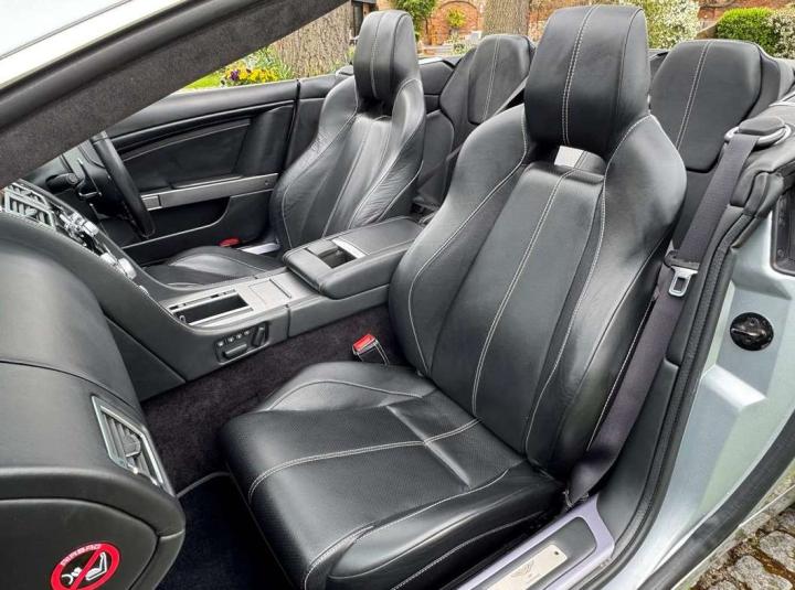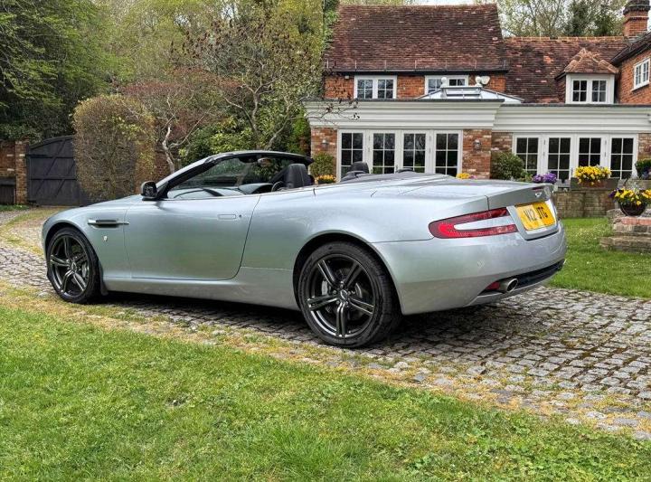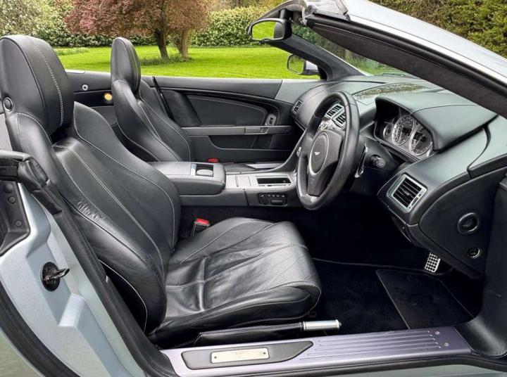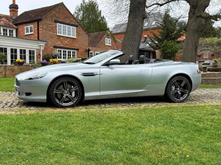 2009 Aston Martin DB9 Volante finished in Titainium Silver with Obsidian black hide interior with contrasting white stitching and a fully retractable black mohair soft top. This superb low mileage example comes with a fully stamped up service book with 17 service stamps from Aston Martin main dealers and the final stamp from a well respected Aston Martin specialist. The car is in unmarked condition both inside and out and the specification includes a Piano black centre console complete with Glass key, Charcoal headlining, electric heated seats with lumbar support, Satelite navigation and cruise control. The DB9 provides an effortless driving experience and it is rare to find a 17 year old example with such low mileage in this exceptional condition.