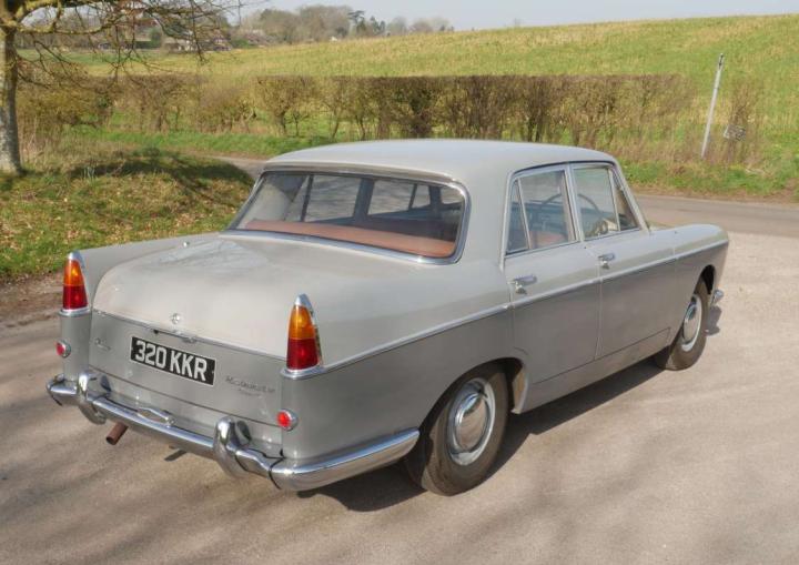 Enthusiast owned for the last 15 years, beautifully presented in two-tone grey with original red-brown leather interior, this luxurious automatic drives beautifully with ample power for its C series straight 6 with twin SU carburettors, smooth and responsive gearbox and good steering. Has been fitted with a servo and a cleverly hidden auxiliary fan with period switch. Body is exceptionally sound, paintwork and chrome very good, interior has lovely original feel to it. Recently had, we understand, a new exhaust and fuel pump. Comes with period radio, driver’s handbook, service manual, a rare complete toolkit, V5, a good history file and a few spares.