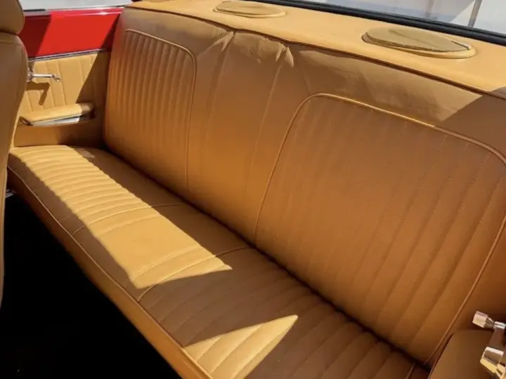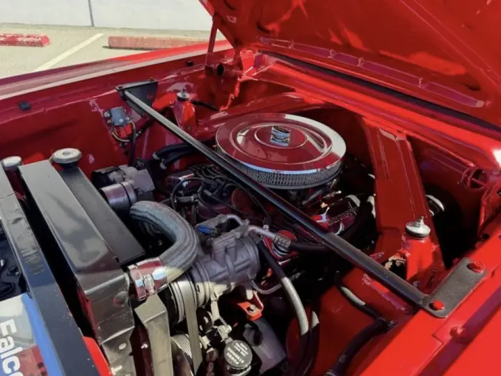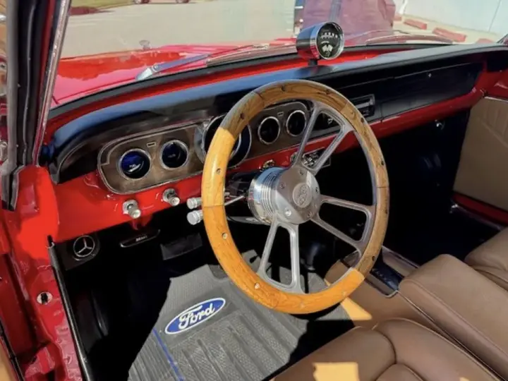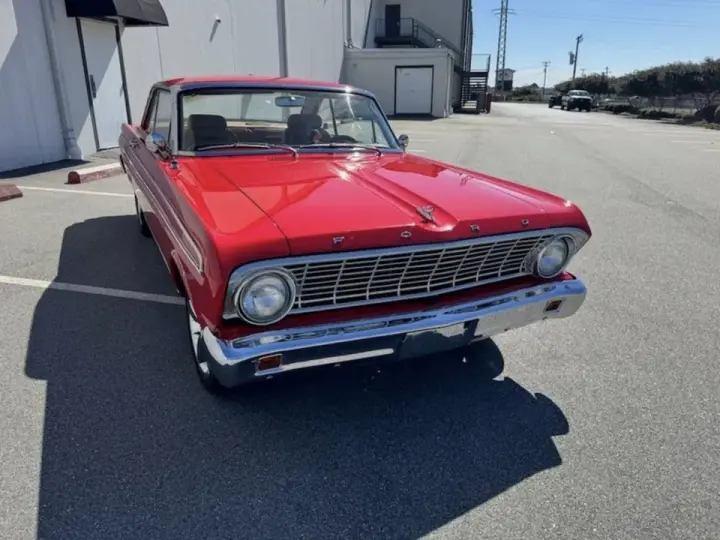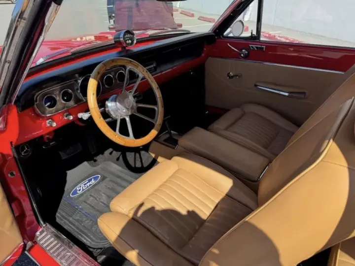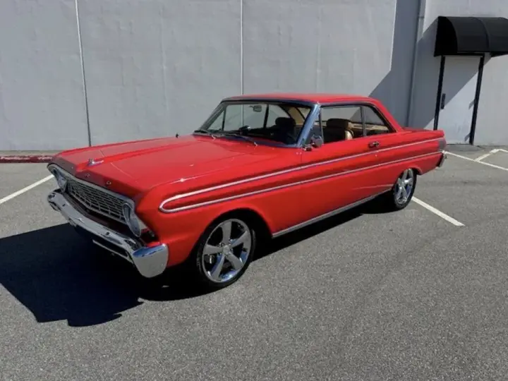 1964 Ford Falcon Futura, stunning Torch red pant, custom tan leather interior, 302 ci engine, automatic overdrive transmission, power steering, front disc brakes, air conditioning, bucket seats with center console, Dakota digital dash, tilt column with billet wheel, dual exhaust, custom wheels, Ready to Cruise!