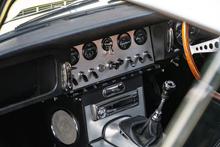 The E-type was back on the road in March 2009, having had no expense spared in terms of its restoration. It was then kept in a cocoon in a garage, and a photographic record of the rebuild comes with the car.