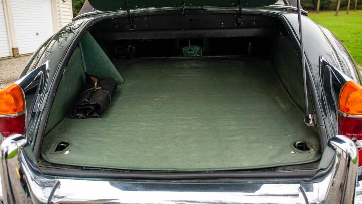 The car was then stripped and repainted in Bentley Brewster Green, fitted with “bucket seats”, new carpets hood and tonneau cover. At the same time the engine was rebuilt, and the car was converted to RHD.