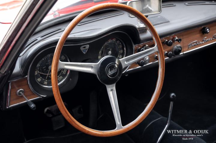The fastest Flaminia engine was the 3C, which stood for three carburetors. This specific Flaminia Super Sport Zagato, is one of approximately 150 examples produced with the Zagato Double Bubble bodywork. A late production example with a 2,8-liter engine, three carburetors and recessed headlights, this car represents the pinnacle of development. In 2017 this Flaminia came to the Netherlands, recently the engine was completely overhauled by a well-known specialist. The engine is now run in and ready for many beautiful journeys. The car is registered with the Zagato and the Lancia Registro Storico. The car has a Dutch license plate, the Italian license plate shown in the photo is not from this car.