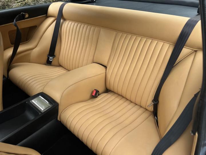 Mr V.B. then sent the car to renowned restorer Kevin O’Rourke of Moto Technique in Chertsey, Surrey, for appraisal. Kevin’s March 1987 estimate included 365 hours for bodywork and 176 hours for retrimming. The car was fully stripped (photographed during the process), jigged, and rebuilt with new wings and door skins. It was repainted in its current colour—Blu Scuro (dark blue)—and retrimmed in new beige Connolly hide and beige Wilton carpets, matching the original specification.