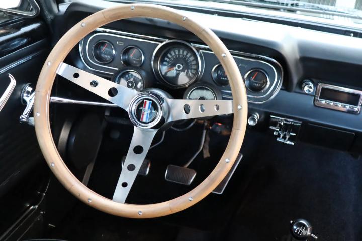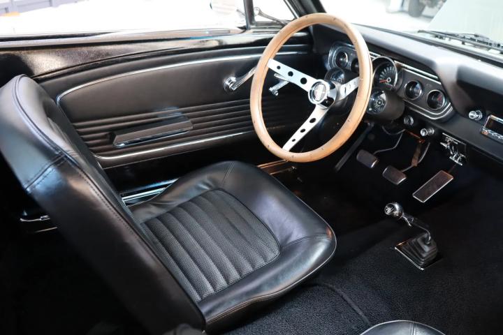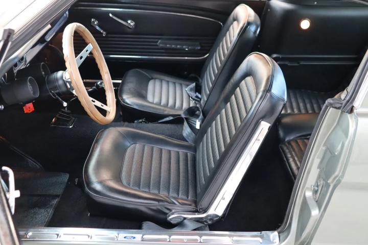 Het interieur is (grotendeels) origineel en verkeert in goede staat. De bekleding is uitgevoerd in zwart skai-leer. De bestuurders kijkt uit over het kenmerkende houten/aluminium stuurwiel en diepe wijzertellers. Ook is er een rally pack gauge cluster set geplaatst met een tachometer en klokje. Een moderne 'Retrosound' radio met klassieke looks is gemonteerd, voorzien van een USB-aansluiting, bluetooth en twee extra speakers in de schutpanelen. Het interieur vormt een ideale combinatie van comfort, originaliteit en klassieke looks. Bovendien is de Mustang een 2+2, waardoor 4 personen kunnen genieten van de rijervaring van de Mustang.