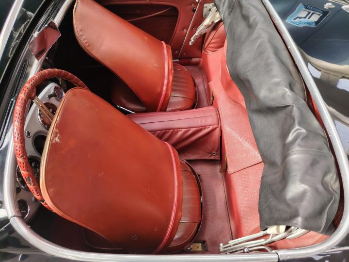 Before restoration began, in order to verify its complete authenticity, the car was certified by the British Motor Industry Heritage Trust on October 17, 2008. The certificate confirms the matching numbers for the chassis, engine, body, and original color combination.