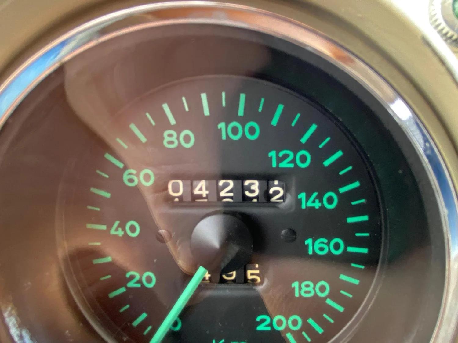 Magnifique coupé Porsche 356 Pre A Knickscheibe de 1954. Cette voiture a été commandée par le célèbre concessionnaire Porsche Hoffman à New York. Elle a été commandée en tant que coupé standard en noir avec un intérieur en cuir vert avec comme seules options : un siège couchette et une paire de phares Bosch. Le client pour lequel elle a été commandée est un certain M. Plummer. Peut-être Christopher Plummer ? Le célèbre acteur et passionné de Porsche ? A un moment donné, la voiture est retournée en Europe où elle a été entièrement restaurée et a reçu cette très élégante couleur beige avec un intérieur en cuir marron. La carrosserie a été entièrement restaurée avant d'être peinte et est toujours dans un état exceptionnel. Mécaniquement, la voiture a été équipée d'un moteur à quatre cylindres à plat de 1500 cm3, correct pour l'époque, mais qui n'est plus d'actualité. On ne sait malheureusement pas pourquoi cette voiture a changé de moteur. Le moteur a été entièrement reconstruit ainsi que la boite de vitesse et fonctionne comme neuf. Tous les autres composants mécaniques ont également reçu une cure de rajeunissement. De plus, tout a été gardé aussi original que possible. Toujours en configuration 6V ! L'intérieur en cuir marron est en très bon état, tout comme le reste de l'intérieur. Le tableau de bord a ses jauges VDO qui sont toutes reconstruites et fonctionnent bien. Vous remarquerez que la radio Telefunken est toujours à sa place. Le coffre avant abrite une roue de secours chromée et une nouvelle batterie Optima 6V qui est reliée à un coupe-batterie situé sous le tableau de bord. A l'extérieur de la voiture, on trouve 2 feux de route Marchal, un badge Nurburgring et le logo Reutter. Un porte-bagages de capot moteur est livré avec la voiture mais n'est pas monté pour le moment. Toutes les roues neuves ont été chaussées de nouveaux pneus d'époque en taille 5.00-16. Si vous êtes à la recherche de l'ancêtre de toutes les Porsche, ceci est l’exemplaire que vous cherchez.