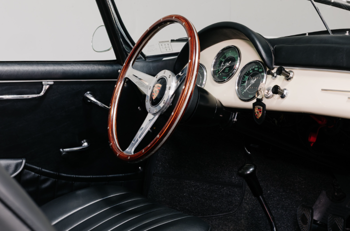 The 356 Roadster was conceived as the successor of the Speedster. The main differences with the more common, less rare, Cabriolet 356 B variant were the removable windshield frame, the Speedster-like minimalist dashboard, the lighter and less bulky soft-top frame, the Roadster offered a purer, sport-oriented character than the contemporary Cabriolet. Produced between 1959 and 1961 and with a total run of 2.653 examples, the Roadster is revered as one of the most interesting 356 models, specially in its “Super 90” variant.