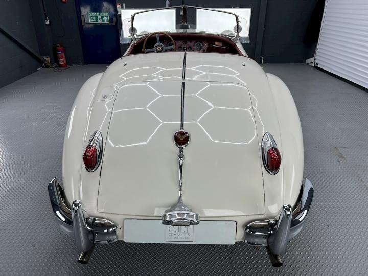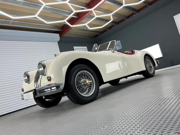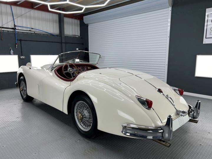 Finished in Old English White with contrasting Maroon interior our XK is the more desirable Special Equipment model with C-Type cylinder head and manual / overdrive transmission It has quite a few mechanical modifications and has just undergone an extensive recommissioning at XK legends, Guy Broad in Coventry.