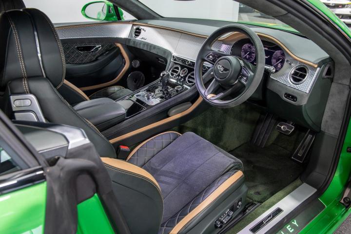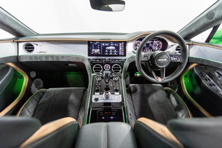 Styling Specification, Touring Specification, Contrast Stitching, Bentley Rotating Display, Front Seat Comfort Specification, Embroidered Bentley Emblems to Seat Facings, Diamond Knurling, Steering Wheel - 3 Spoke Single Tone Indented Hide Trimmed - Heated, Mood Lighting Specification, Illuminated Bentley Sill and Personalised Treadplate, Valet Key, Apple Green, Naim for Bentley, Adaptive Cruise Control System, Decorative Insert for Console - Engine Turned Aluminium - Dark Tint, Contrast Steering Wheel and Gearlever, Alcantara Seat Bolsters and Door Inserts, 22in Alloy Wheels - Speed - Dark Tint, Apple Carplay, Auto-Dimming Rear View Mirror, Bentley Dynamic Ride System, Blind Spot Warning, Bluetooth and Wi-Fi Audio Streaming, Drive Dynamics Mode, Dynamic Ride-Height Control -Auto Adjust at Speed and Ground Clearance Function, Electronic All Wheel Steering, Front Screen Infotainment System with 12.3in High Resolution Capacitive Touchscreen Display, Front Seats - Electric 12-Way Adjustment with Heating and Two Memory Functions, Full LED Matrix Headlamps with High Beam Assist, Park Assist, Reversing Camera with Graphic Screen Representation, Satellite Navigation, Steering Wheel - 3 Spoke Single Tone - Alcantara Trimmed - Heated