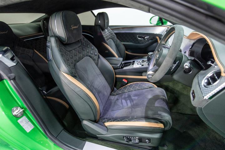 2021, Bentley Continental GT Speed 6.0W12 AWD, Finished in Apple green metallic with contrasting diamond Quilted Alcantara and hide, Showing just 20996 miles from new, This incredible car comes highly specified including - Touring specification, Continental Blackline Specification, Front seat comfort specification, LED Welcome lamps, 22" Speed Alloy wheels with dark tint, Adjustable drive modes, Heated folding door mirrors with memory function, Night Vision, Perforated, Heated, Climate, massage seats with memory function in Quilted Alcantara/Hide and Bentley crest on headrests, Quilted door cards with aluminium tint and contrast stitching, Alcantara headlining, Deep pile over mats, Rotating display, Touchscreen multi media and operating system with Satellite navigation, Bluetooth telephone preparation, music streaming, CD, Jukebox, Mood Lighting, Heated multi function steering wheel with electric adjustment, Adaptive cruise control, NAIM, Front and rear parking sensors with 360 Camera, Heads up display, Illuminated "Bentley" door sill, Soft Close doors, Noise insulated dual glazed windows, Rear privacy glass, Blindspot monitoring, Intelligent coasting, Electric rear spoiler in Carbon, and a whole host of other features