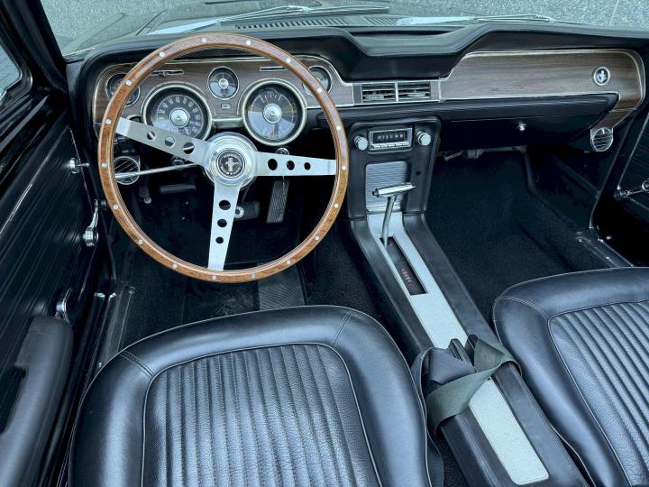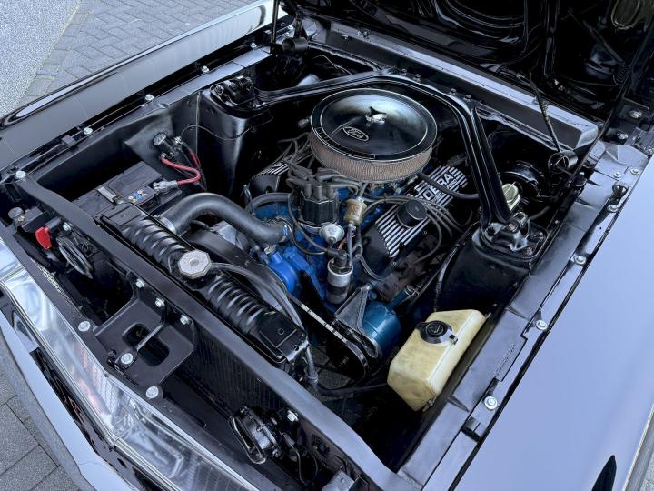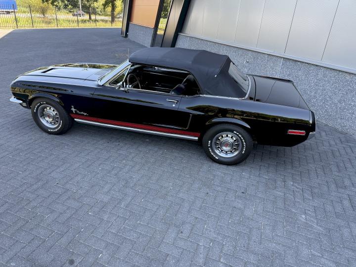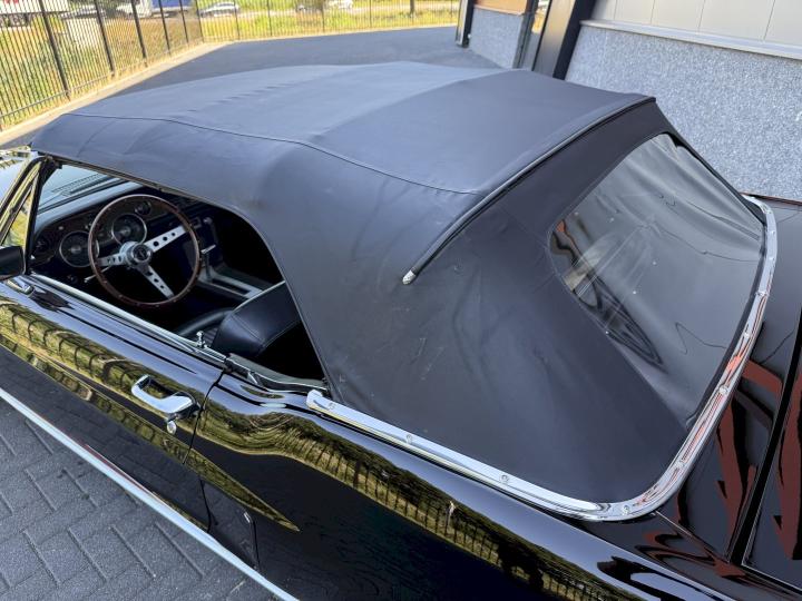 an extreme nice straight deep dark raven black paint like a mirror ,the interior was renewed at the time as wel the black softop this c-code 289 was replaced with the 4 barrel 225hp intake carb hooked to an AOD automatic so its 3 speed with an overdrive what shifts smooth tru al gears low rps for highway cruise , the rear thirdmember war renewed incl a aluminum drive shaft this mustang is ready to drive loaded with power disc brakes,power steering power top double exhausted and electric shoke with electric ignition