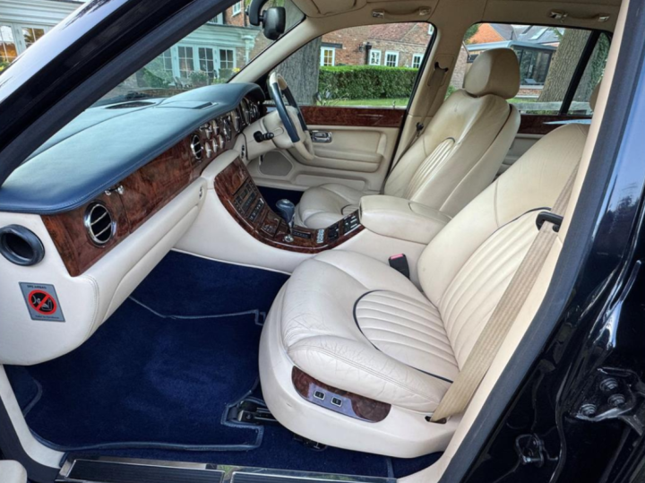 This 2001 Bentley Arnage Red Label is finished in Deep Pcean blue with a beautiful, unmarked cream hide interior piped in pale blue. The interior is further complimented by pristine walnut veneers. With the car is a detailed service history file together with a DVLA record of every mot certificate issued showing a gradual progression of mileage, through to the current mileage of just over 42,000 miles. There is no doubt that this beautiful motor car has led a cossetted life in the custodianship of its previous owners. We recently sold this fine motor car to an elderly Australian Couple who arrived in the UK in August, specifically to join a Bentley tour fom Lands End to Jon a Groats. The gentleman and his wife who own a number of Bentley Motor Cars in Australia thoroughly enjoyed their UK tour on which this Arnage Red Label performed in the anticipated faultless manner. Prior to their trip, the car was fully serviced and fitted with new tyres all round which have now covered less than 2,000 miles. Now 24 years old, the car is very rare in terms of its condition and extemely low mileage and represents exellent value at £22,500