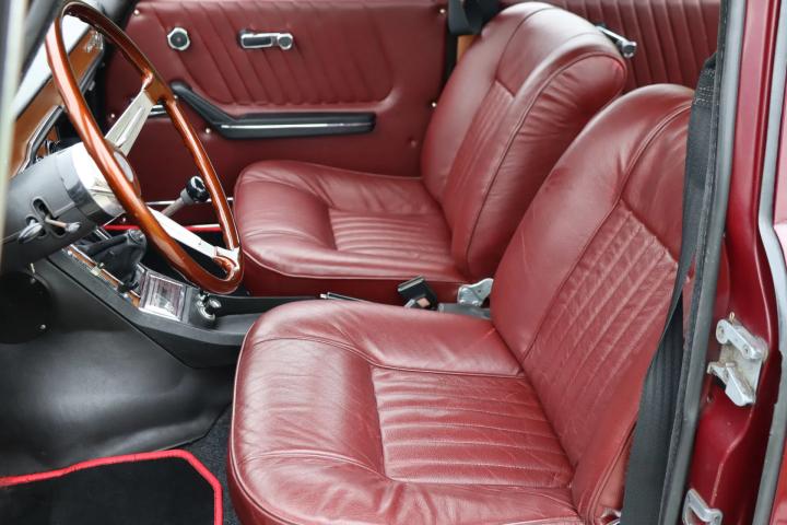 The maroon leather interior is also a true work of art and is in very good condition. The interior features attractive gauges and a wooden dashboard that is still in very good condition. The car is driven by the attractive wooden 3-spoke steering wheel. The interior has normal signs of wear and is in overall good condition. All gauges are working. The leather upholstery is free of tears. For safety and comfort, the car offers heating and seat belts. The boot is surprisingly spacious and is also in good condition. Neatly covered under the boot mat is the spare wheel.