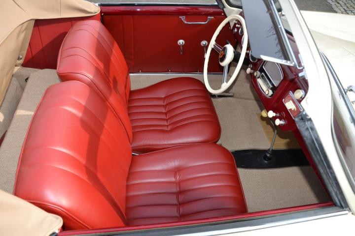 In February 1954, the Porsche was registered by Hoffman, the well-known dealer in New York. In the late 1980s, the car was expertly restored in Italy, both mechanically and in terms of bodywork. This is evident in the exceptionally precise panel fit. The 1500 engine is of the correct type and has been built to the proper specifications. In 2018, the interior and soft top were restored according to Reutter’s Farbmusterkarte (included with the car), and minor imperfections were addressed.