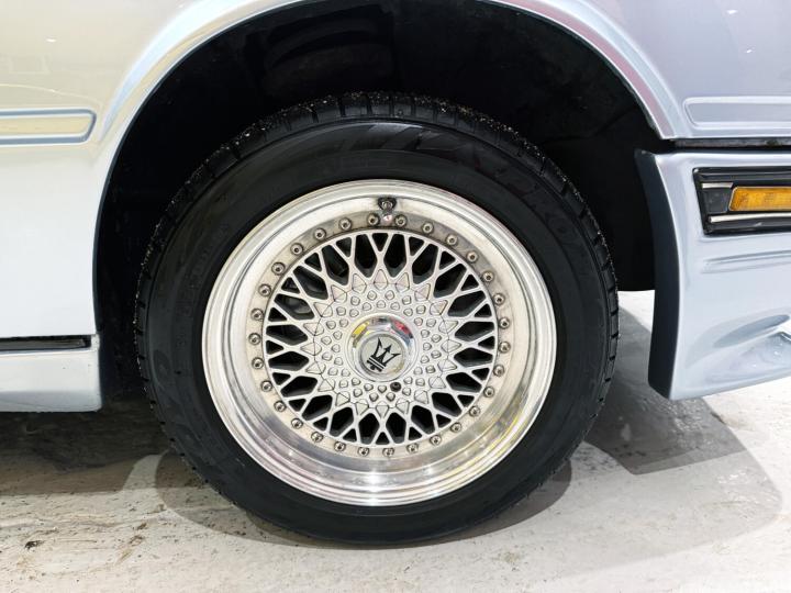 This particular example was first registered in January 1989, although the chassis number dates its manufacture to 1987; a fairly common anomaly for slow-selling exotica. In fact, in order to further boost sales, Maserati GB announced a special edition ‘SE’ version. This was not an official factory term as the modifications were done in the UK, but included a Zender bodykit of uprated bumpers, side skirts and boot lid spoiler, OZ 15” multi-spoke wheels to replace the original 14” plain alloys, a MOMO steering wheel and sometimes MOMO gear knob. Very often, the lower halves of the body were painted in a contrasting colour to give a two-tone effect. Judging by the MOT history, this car had this treatment, for while it is an original silver car, previous MOT testers refer to it having been silver/blue.