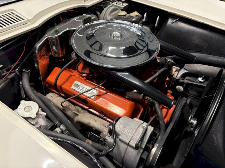 The 1965 model year marked a turning point in Corvette history. With its sharp, aggressive lines and distinctive hidden headlights, the C2 Corvette—often referred to as the “Mid-Year Corvette”—set a new benchmark for American sports cars. This particular example stands out in a dazzling Ermine White exterior finish, beautifully contrasted by a sleek black leather interior that still exudes sophistication and charm nearly 60 years later.