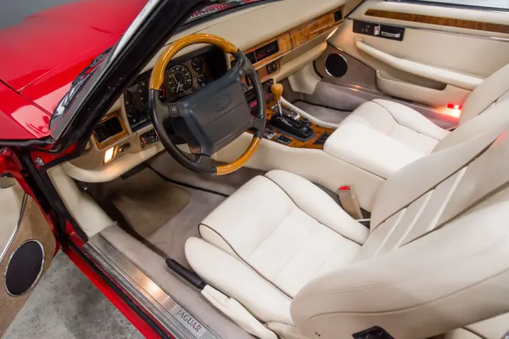 This 4.0 6 cyl Celebration Edition Jaguar Southern states example is void of rust and rust history. The car has never had body panels replaced, all the vin numbers are on the original body panels. The interior is absolutely lovely with good color on the leather seats and crack free interior wood trim. The dash has no warpage and void of cracks .Door cards are straight and crisp. The top is in good order as well as the headliner ,top works as designed. .Tires are deep in tread ,the wheels have a nice finish. Paint is as nice as pictures reflect.