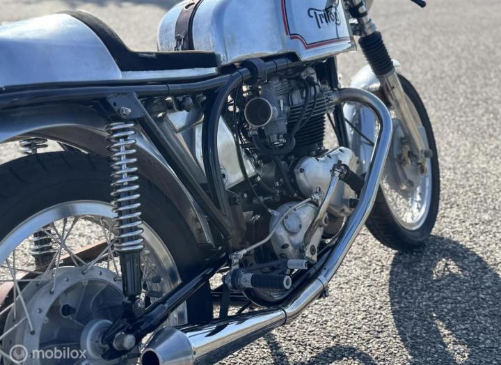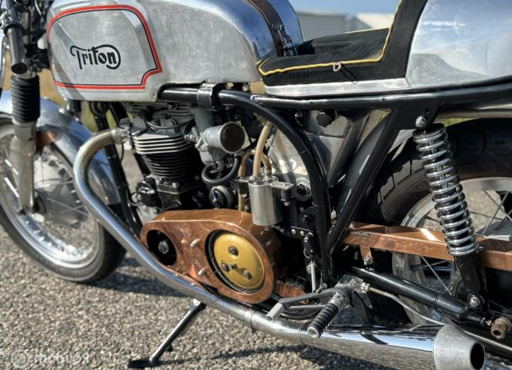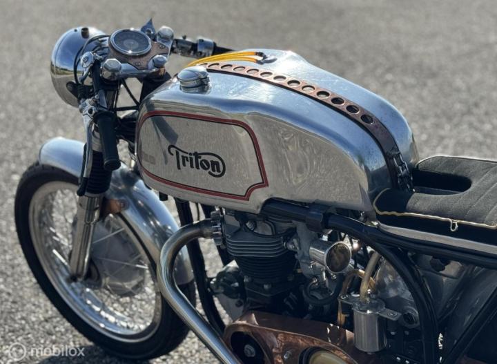 Een Triton is een samenstelling van een Norton Featherbedframe met een Triumph 650 parallel twin blok. In de jaren 50 en 60 zijn er veel van deze motoren gebouwd en er is er geen één hetzelfde. In 2022 is deze motor volledig gereviseerd en daarna is er eigenlijk niet mee gereden, hierbij is ook het frame gepoedercoat.